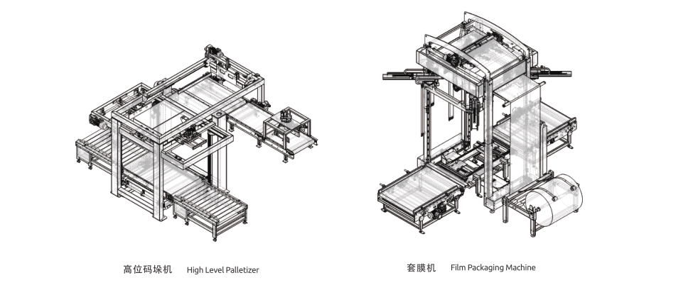 - 全自動高位碼垛生產線采用模塊化設計,根據客戶的不同的需求進行模塊化配置。